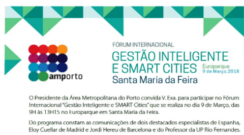 Com o nome "Gestão Inteligente e Smart Cities", o fórum organizado pela AMP realiza-se no Europarque, em Santa Maria da Feira, das 09:00 às 13:00 com três oradores que farão comunicações sobre os desafios que a gestão inteligente coloca aos municípios e sobre o uso das tecnologias na gestão dos territórios.
