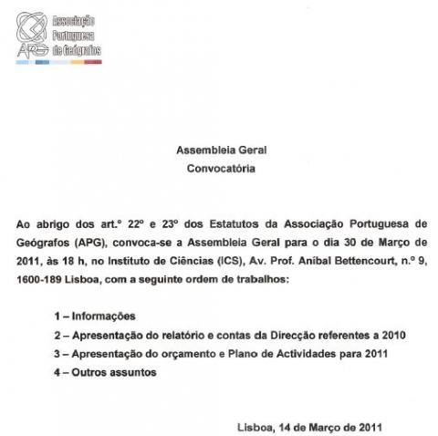 ASSEMBLEIA GERAL DA ASSOCIAÇÃO PORTUGUESA DE GEÓGRAFOS