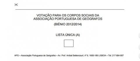 Dando cumprimento ao Regulamento Eleitoral dos Estatutos da Associação Portuguesa de Geógrafos, disponibiliza-se aqui o boletim de voto.