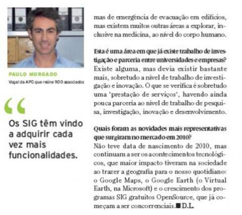 Aceda ao Especial Sistemas de informação Geográfica, artigo no Diário Económico Nº 5117 DE 17 FEVEREIRO 2011, onde pode observar a entrevista a Paulo Morgado, vogal da APG.