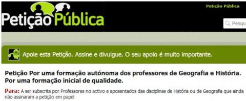 A Petição Pública Nacional “Por uma formação autónoma dos professores de Geografia e História. Por uma formação inicial de qualidade” está desde ontem, 6 de Outubro, disponível online