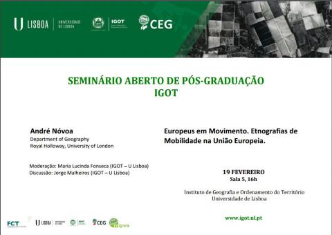 SEMINÁRIO ABERTO DE PÓS-GRADUAÇÃO IGOT - Europeus em Movimento. Etnografias de Mobilidade na União Europeia | 19 de Fevereiro 2014 | Sala 5, 16h | Instituto de Geografia e Ordenamento do Território