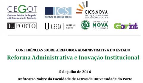 Conferências sobre a Reforma Administrativa do Estado: Reforma Administrativa e Inovação Institucional | 05/07/2016 | 14h00 – 18h00 | Anfiteatro Nobre da Faculdade de Letras da Universidade do Porto