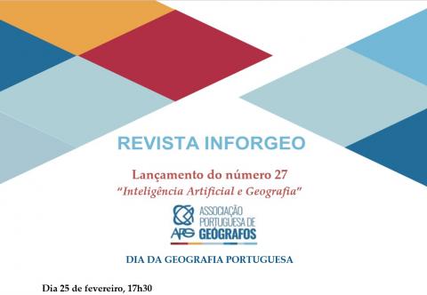 A Associação Portuguesa de Geógrafos vai assinalar o Dia da Geografia Portuguesa com o lançamento do número 27 de revista Inforgeo. A presente publicação, que contará com diversos artigos, está subordinada ao tema "Inteligência Artificial e a Geografia" que será o mote para, a partir das 17h30, uma sessão online moderada pelo Prof. Doutor Eusébio Reis.