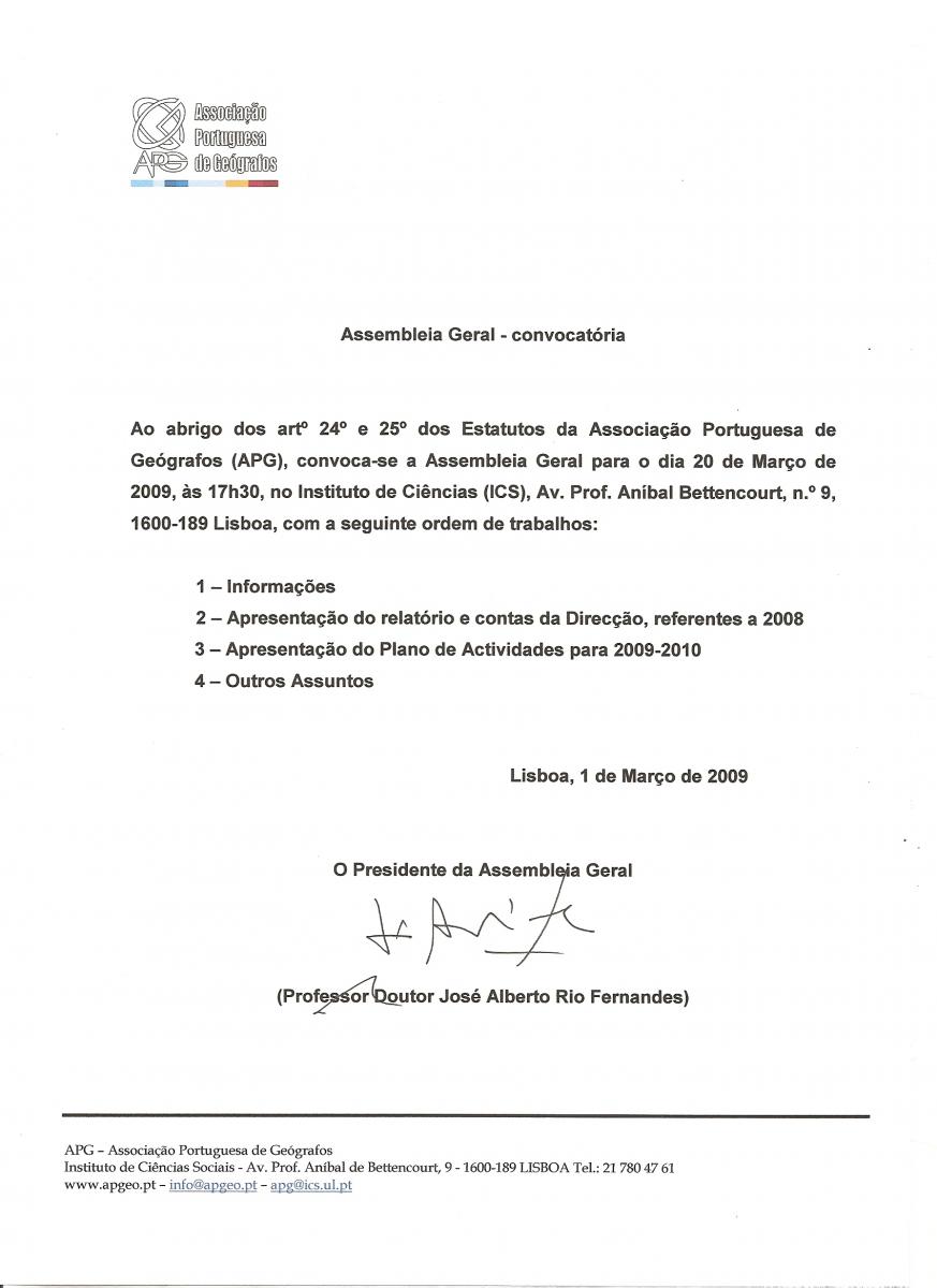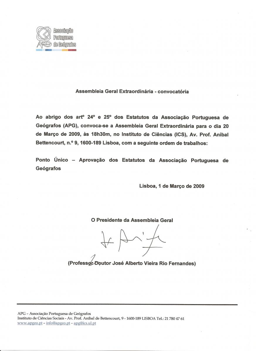 Junto seguem em anexo as Convocatórias para a Assembleia Geral da APG e da Assembleia Geral Extraordinária (Aprovação dos Novos Estatutos).