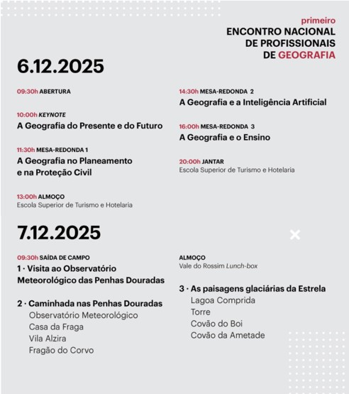 Primeiro Encontro Nacional de Profissionais de Geografia | 6 e 7 de dezembro de 2025, em Seia