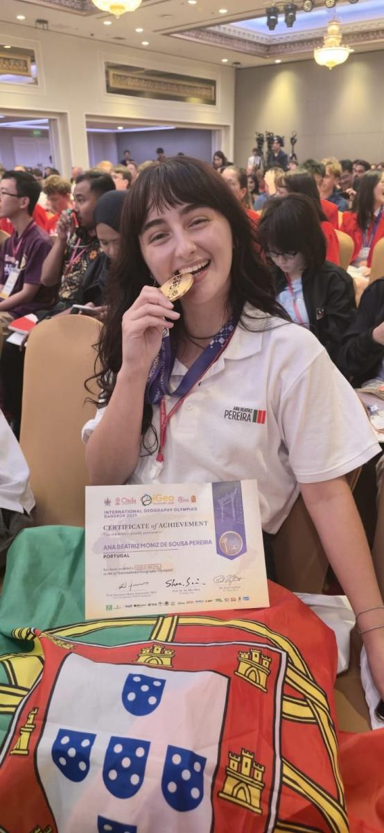 A aluna Ana Beatriz Pereira (Escola Secundária Vitorino Nemésio, Açores) conquistou uma Medalha de Ouro, elevando bem alto o nome de Portugal no panorama internacional da Geografia escolar. Um feito notável que reconhece o seu empenho, conhecimento e paixão pela disciplina.