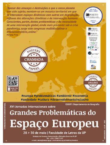 Perante o atual cenário da pandemia do COVID 19 e dadas as restrições sanitárias e, consequentemente, também as logísticas, a Comissão Organizadora das XV Jornadas Internacionais sobre “Grandes Problemáticas do Espaço Europeu”, foi tomada a decisão de concretizar este evento ONLINE. Realizar-se-á nos dias 28, 29 e 30 de maio de 2021.